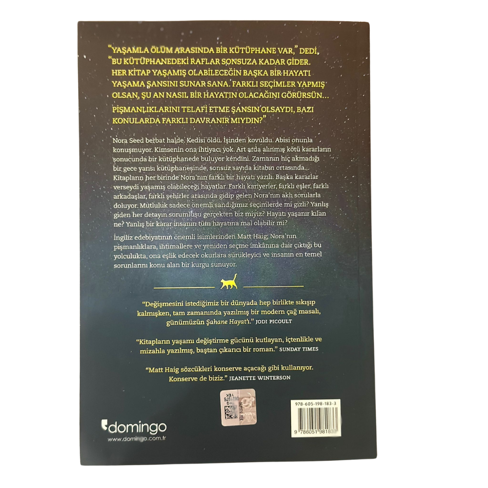 İngiliz edebiyatının önemli isimlerinden Matt Haig; Nora’nın pişmanlıklara, ihtimallere ve yeniden seçme imkânına dair çıktığı bu yolculukta, ona eşlik edecek okurlara sürükleyici ve insanın en temel sorunlarını konu alan bir kurgu sunuyor.