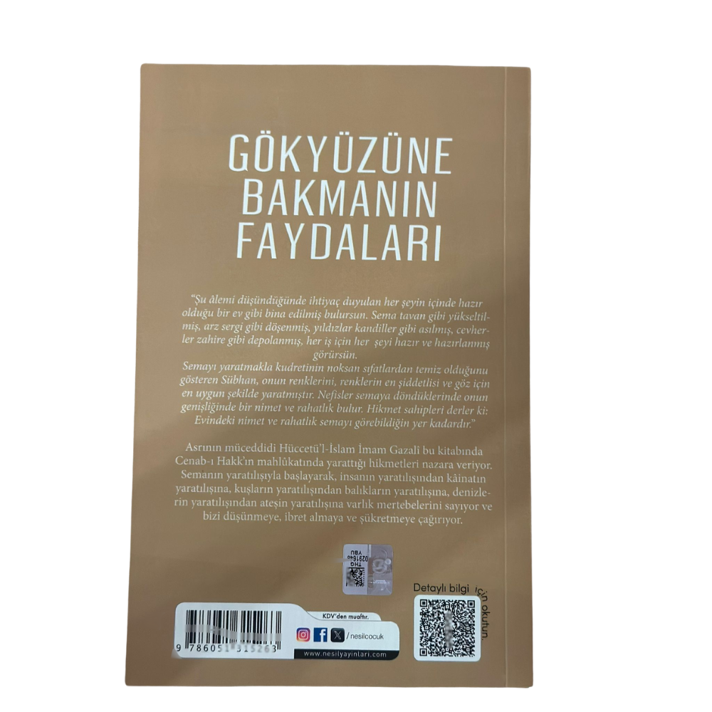 Asrının müceddidi Hüccetü’l-İslam İmam Gazalî bu kitabında Cenab-ı Hakk’ın mahlûkatında yarattığı hikmetleri nazara veriyor. Semanın yaratılışıyla başlayarak, insanın yaratılışından kâinatın yaratılışına, kuşların yaratılışından balıkların yaratılışına, denizlerin yaratılışından ateşin yaratılışına varlık mertebelerini sayıyor ve bizi düşünmeye, ibret almaya ve şükretmeye çağırıyor.